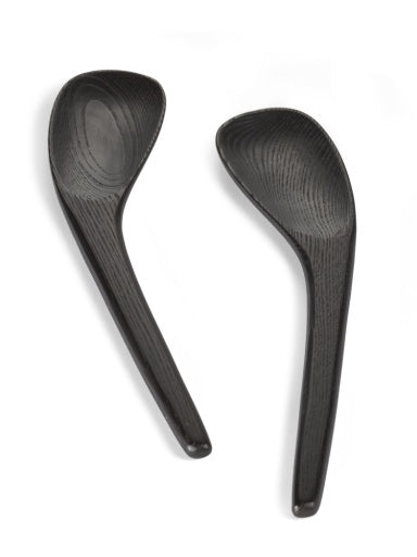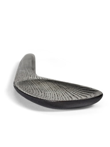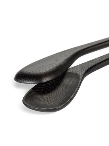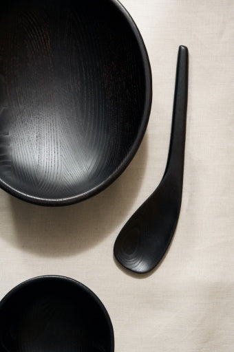 Als aanvulling op het servies in steengoed ontwierp Uncharted houten presentatieplankjes, die aan twee kanten gebruikt kunnen worden, en indrukwekkende schalen op voetjes, in verschillende afmetingen. Door het carbonisatieproces krijgt het essenhout een diepbruine kleur, bijna zwart, waardoor de objecten iets mystieks en tijdloos krijgen. Ze zijn afgewerkt met een kleurloze watergedragen vernis voor extra bescherming.