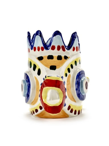 De creatieve samenwerking tussen de gevierde Brits-Israëlische chef Yotam Ottolenghi en zijn goede vriend en kunstenaar Ivo Bisignano leidde deze keer tot 4 uitbundige handgeschilderde keramieken vazen. Met de vazencollectie Sicily maken ze een reis van de tafel naar buiten. « In Sicilië, waar ik opgroeide, zit je aan de keukentafel te eten terwijl je geniet van het zicht op de kleurrijke balkons met hun bloemenpracht », zegt Ivo Bisignano. Sicily vat de uitbundige manier van koken van Ottolenghi en is tegelijkertijd een ode aan de zon, de kleuren en de passie van Bisignano’s geboorteplek. Deze vazen zijn decoratieve objecten, en we kunnen niet garanderen dat ze volledig waterdicht zijn.