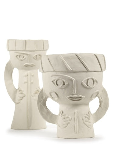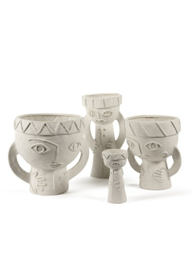 De vazenreeks Les Femmes is geïnspireerd op het beeld van de universele sterke vrouw. Karakteristiek voor ontwerpster Marie Michielssen is de klemtoon die op de handen en de ogen komt te liggen. De ogen staan voor de spiegels van de ziel en de handen voor zachtheid en zorgzaamheid, maar ook creativiteit. Kleine, verfijnde details zoals versieringen van hoofdtooi en kledij, contrasteren met het wat ruwe aspect van de chamotte, die Marie aan de klei heeft toegevoegd. De binnenkant en de bodem zijn afgewerkt met een transparante matte glazuur